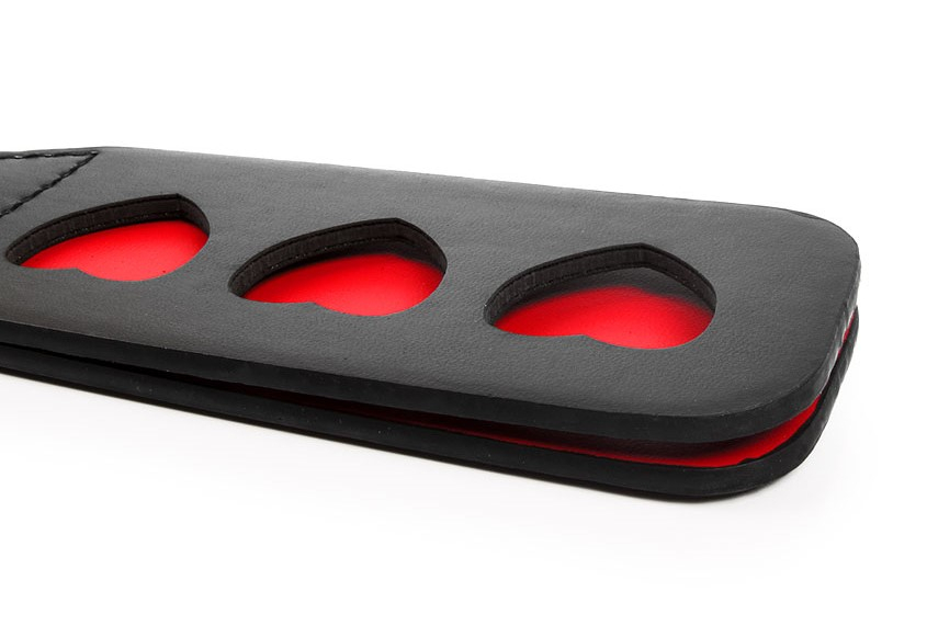 На рабочей поверхности шлёпалки имеются вырезанные сердечки, которые в зависимости от силы флагелляции могут отпечататься на коже.