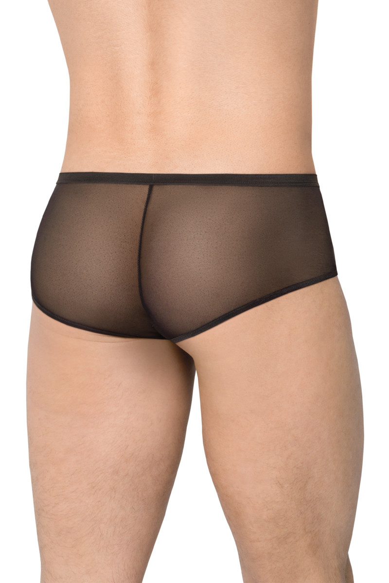 Трусы имеют низкую посадку, тонкую эластичную резинку. Мужчина оценит приятную к телу материю, которая при появлении объекта страсти позволяет намекнуть на возбуждение формами мужского достоинства. Ягодицы в этих шортиках кажутся еще более упругими и желанными, так как сзади они абсолютно прозрачны, вы покраснеете от притока возбуждения и яркого воображения.
