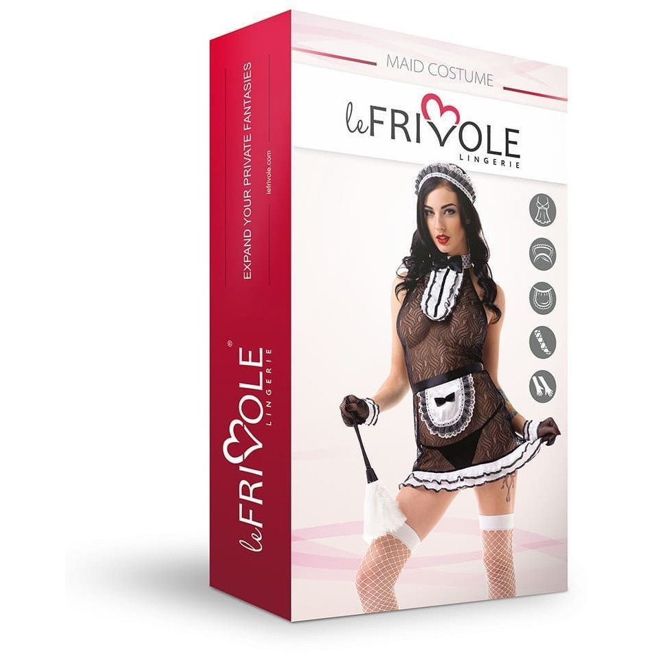 Надень это короткое, полупрозрачное платье. Почувствуй, как ткань ласкает твоё тело, намекая на соблазн, скрытый под слоем невинности. Подчеркни талию белоснежным передником, завяжи жабо, а на голову надень кокетливо покачивающийся головной убор.