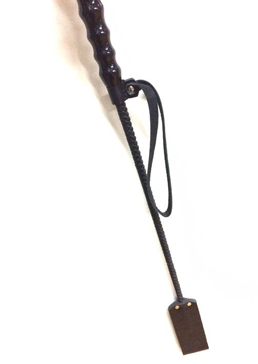 Стек чёрный из натуральной кожи классической формы. Длина стека 70 см, длина язычка 15 см. Ручка вырезана из дерева длина 15 см с кожаной петлей. Отличный и качественный подарок.