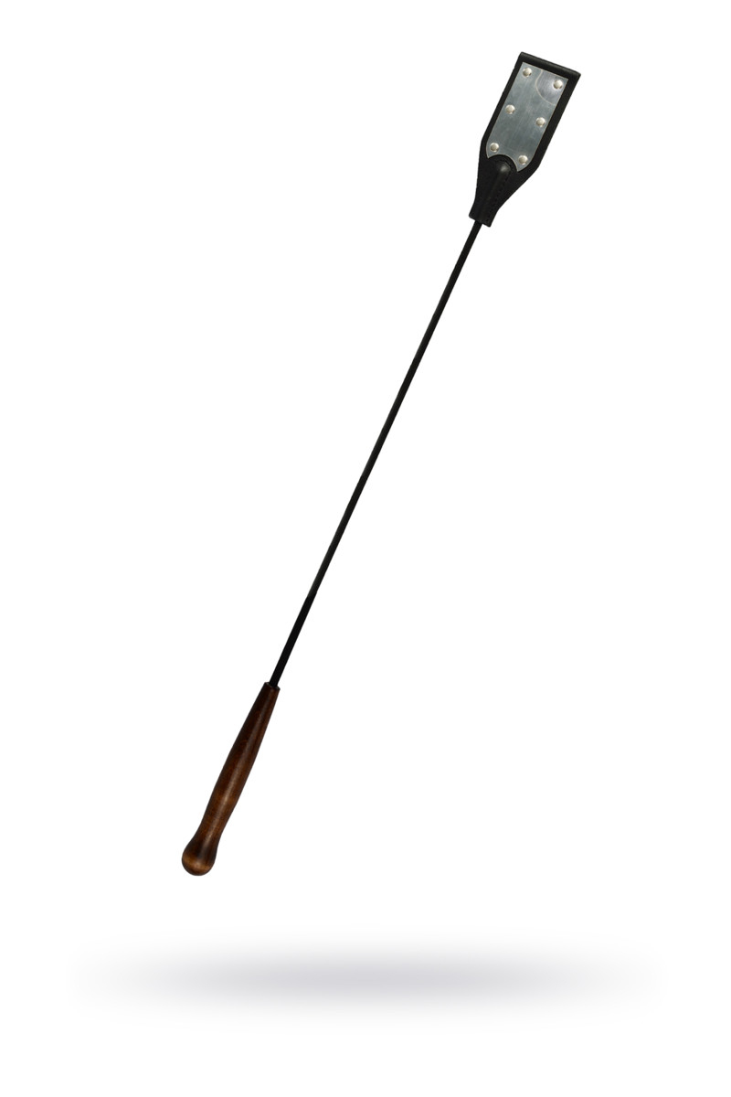 Стек из натуральной кожи с декоративной отделкой под металл и удобной деревянной ручкой. С одной стороны ударная часть стека имеет кожаную поверхность, с другой - декоративную вставку. При желании вы можете на хлопушке разместить логотип или надпись.