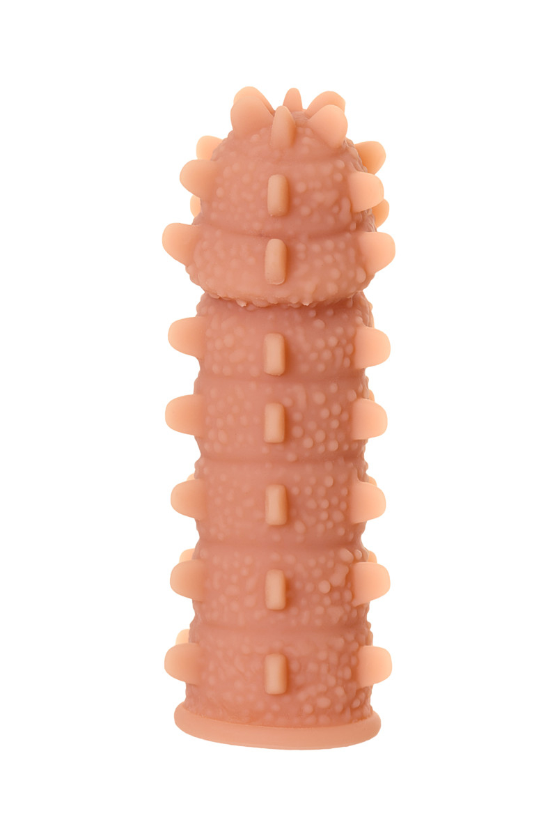 Каждая насадка Кокос имеет свой незабываемый и по особенному чувственный рельеф. Насадка Sleeve4 имеет широкие шипики и рельеф по всей поверхности, для стимуляции эрогенных зон партнера, увеличивает толщину головки и ствола пениса.