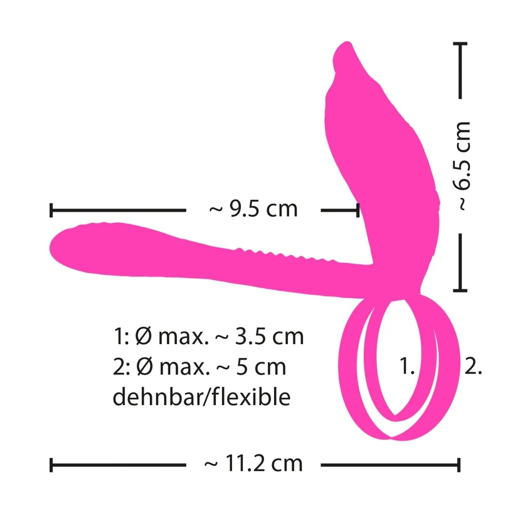 Вы надеваете меньшее кольцо на основание члена и натягиваете большее кольцо на мошонку. Вибратор лежит на половом члене, а стимулятор клитора направлен вверх. Использование смазки на водной основе обеспечивает большую плавность хода и улучшенную передачу вибрации. Затем просто включите вибрацию непосредственно на игрушке или с помощью пульта дистанционного управления, и веселье начинается!