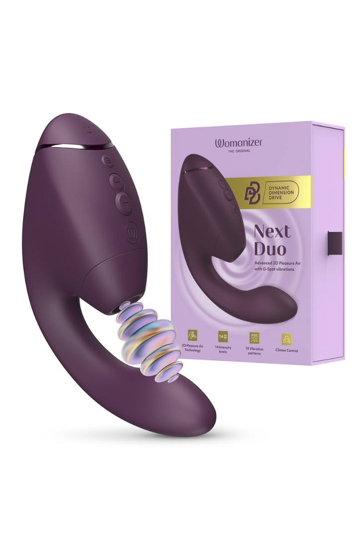 Womanizer Next DUO это словно два искусных любовника, которые знают все ваши секреты и желания. Один нежно ласкает, другой проникает вглубь, создавая неповторимую симфонию ощущений. Вы почувствуете, как ваше тело откликается на каждое движение, как волны удовольствия накатывают одна за другой, унося вас всё дальше в мир блаженства.