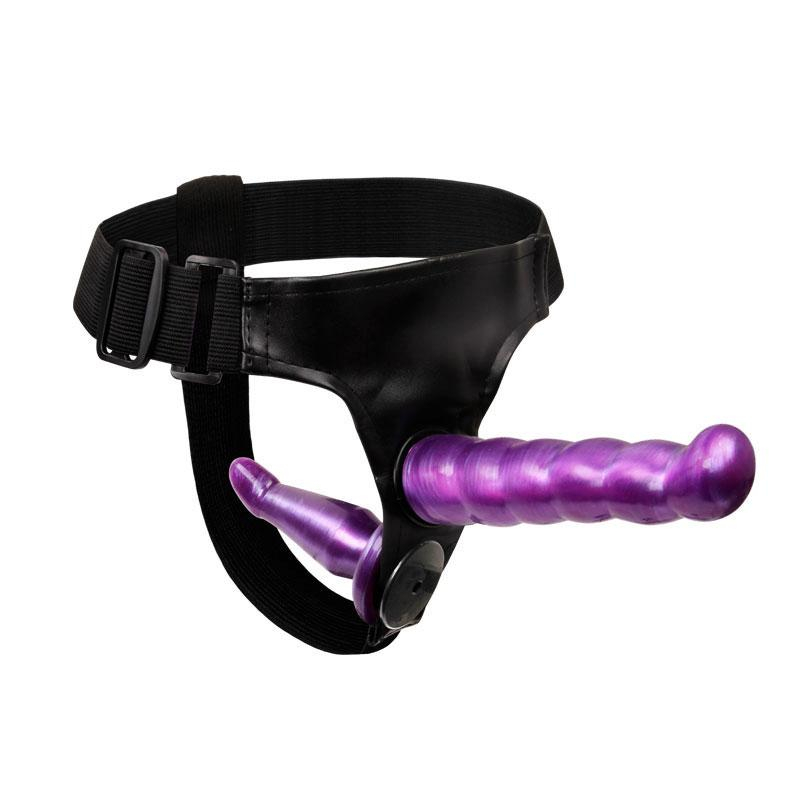 Женский страпон с двумя насадками доставляет удовольствие не только тому, на ком применяют страпон - но и использующей его хозяйке!