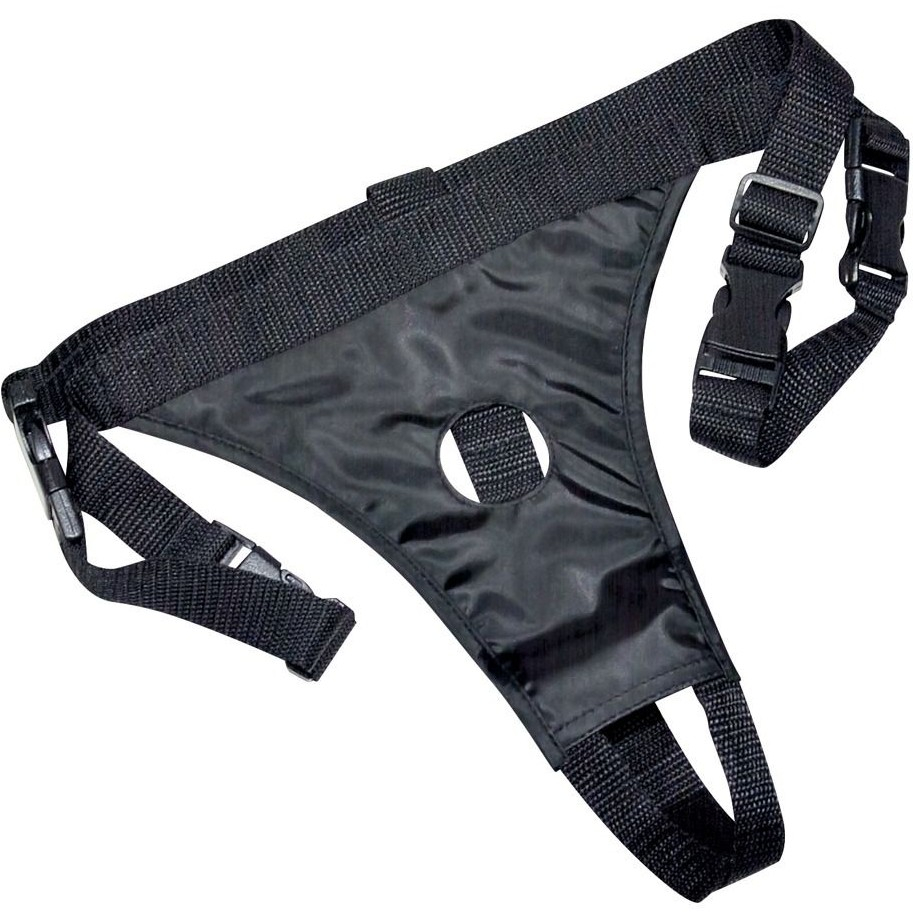 Пояс выполнен в виде черных стрингов, которые регулируются и прекрасно садятся по фигуре. Эти трусики подойдут как девушке с пышными формами так и очень худенькой. Потому что в комплекте есть целых два ремня, которые можно пристегнуть к поясу и увеличить его в обхвате. Пояс универсальный, его можно использовать с любым фаллоимитатором на присоске, при этом в трусиках будет доступ к женской киске.