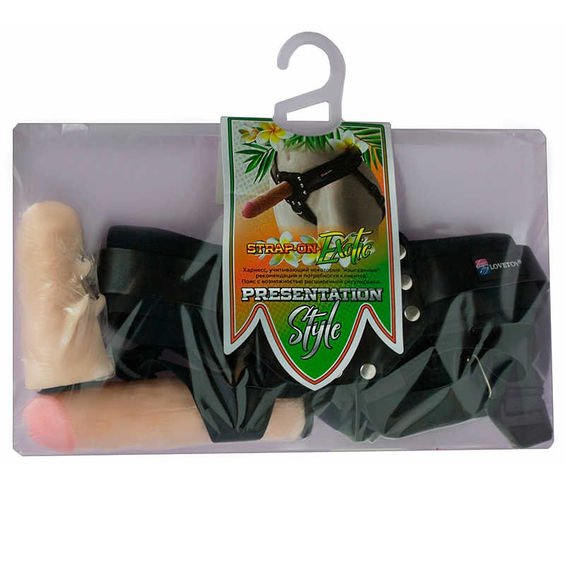 Удобные трусики из материала, имитирующего кожу, оборудованы системами крепления насадок "Harness Realistic", с которой вы можете не только использовать стимуляторы из комплекта, но и любые из серий RealStick StrapOn, а также Vac-U-Lock.