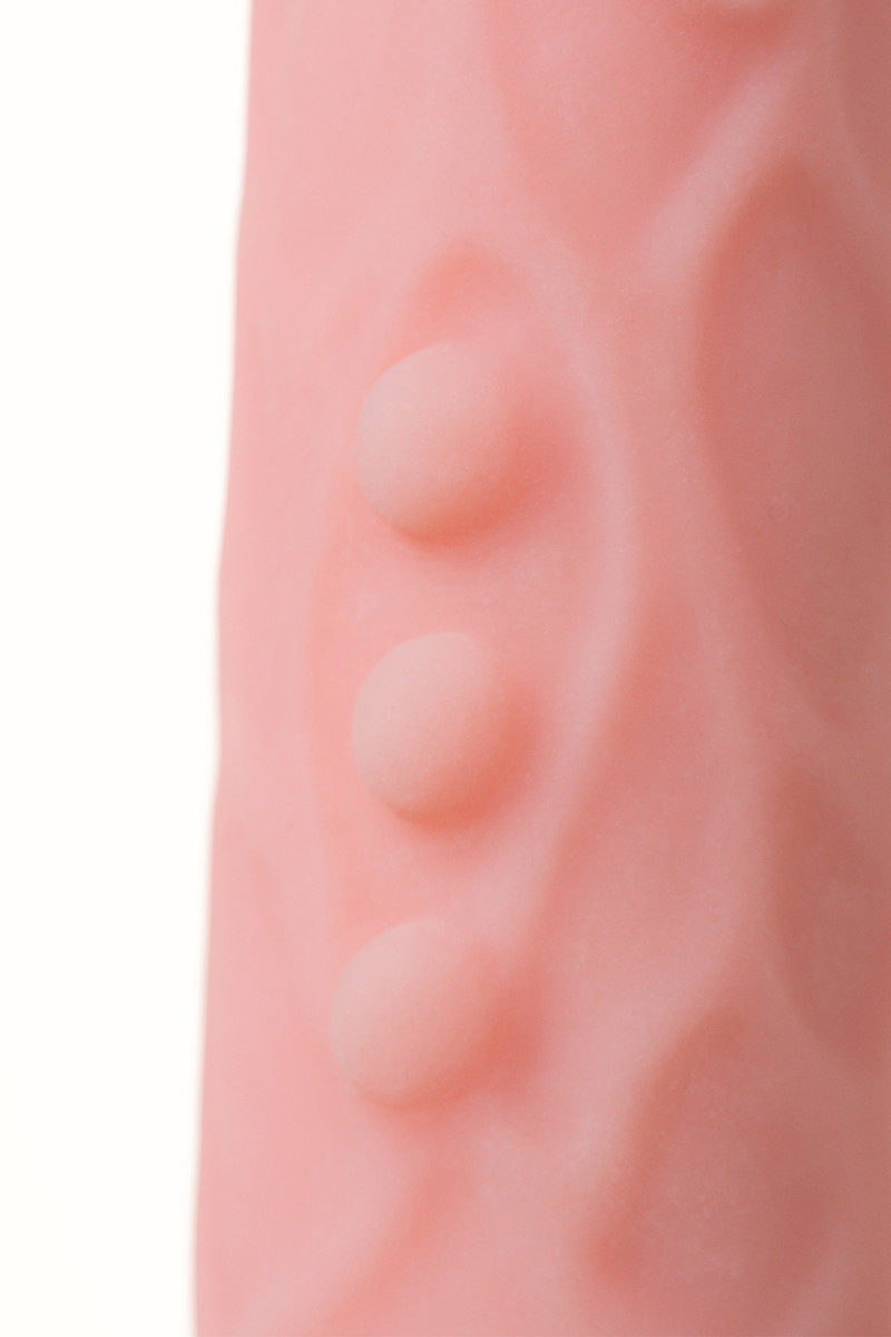 Фаллоимитатор имеет ярко выраженный рельеф и сочную приоткрытую головку, весь ствол усыпан венками.