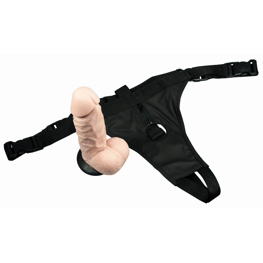 Фаллоимитатор крепится на трусиках, которые могут быть отрегулированы с помощью ремешков и замков-карабинов в соответствии с вашими размерами. В промежности есть доступ. Также на эти трусики очень легко прикрепить фаллоимитатор, так как есть молния с помощью которой утягивается кольцо, которое держит игрушку.