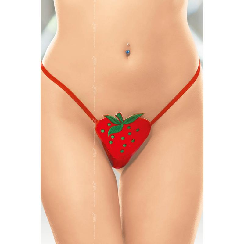 Трусики стринги в форме сочной, яркой клубнички прикроют самая чувственное место на твоем теле, только представь, мужчина стягивает трусики и целует тебя, а там вкусная клубника, которую он начинает жадно слизывать и вкушать. Не забудь про съедобный любрикант со вкусом клубники, он как стать к этим стрингам.
