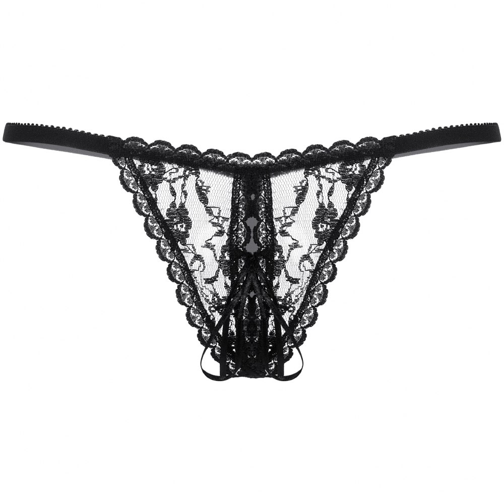 Многие пары готовы на все, лишь бы скуке негде было поселиться в спальне. Да и нельзя сказать, что хлопоты эти неприятны. Разве может быть неприятно женщине выбирать для себя новое белье? Особенно такое красивое, как ажурные трусики-стринги с вертикальным разрезом спереди, в котором будет видна светлая полоска бархатной кожи, и полностью открытые снизу.