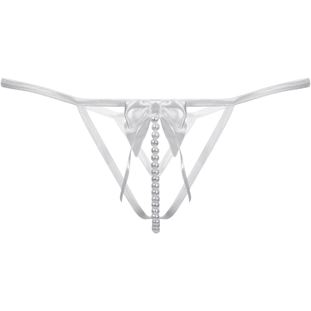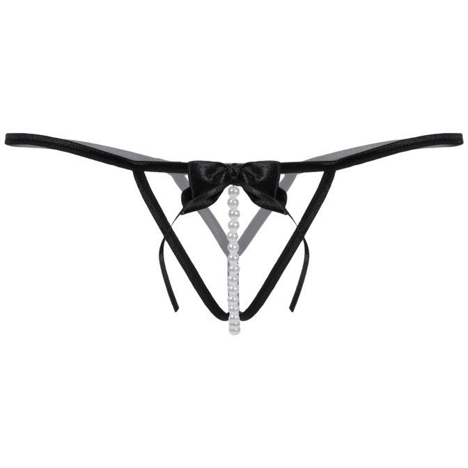 Стринги с открытым доступом. Спереди декорированы роскошным атласным бантом и нитью ''жемчуга''.