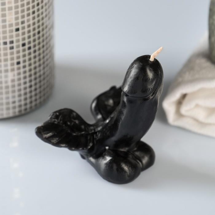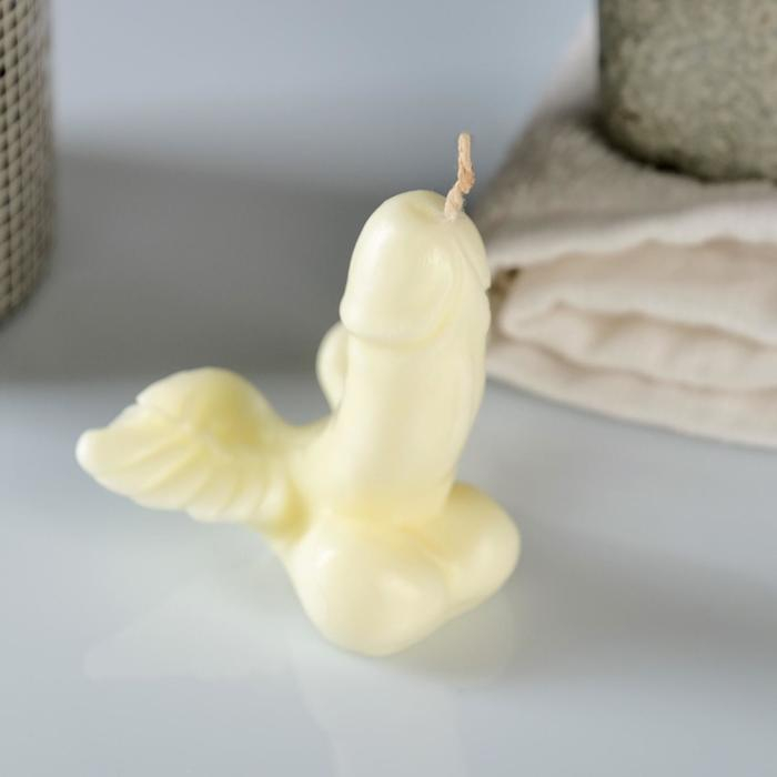 Свечка выполнена в виде мужского члена с крыльями.