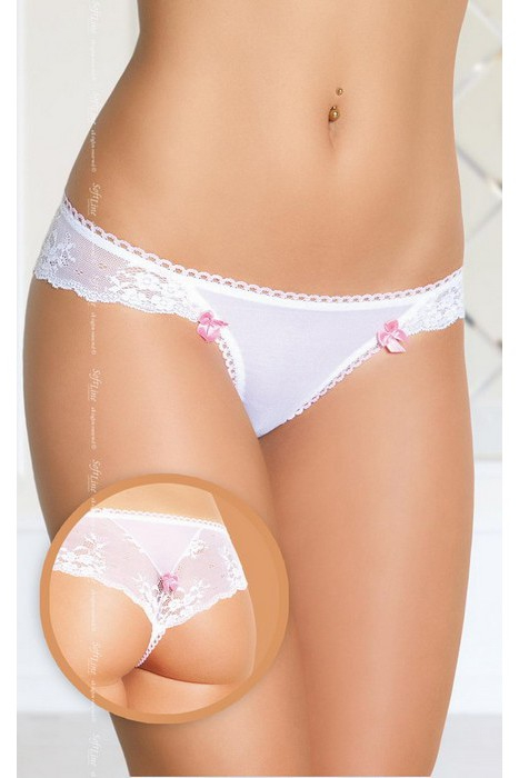 Нежные и изящные, эротичные и кокетливые – женские трусики никого не оставляют равнодушным. Этот элемент белья многое может рассказать о нраве своей хозяйки! Очаровательные трусики-стринги от польского бренда Soft Line выполнены из полупрозрачного материала в сочетании с красивым цветочным кружевом. Изюминка - розовые бантика.