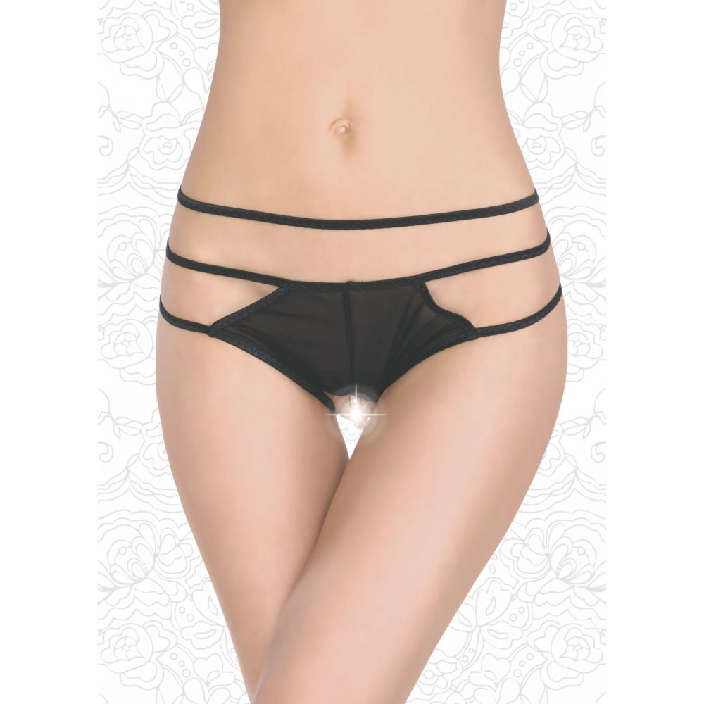 Миниатюрные контактные трусики-стринги изготовлены из нежнейшего материала и декорированы полосочкой бусин "под жемчуг" посередине. Пикантный оригинальный фасон с несколькими декоративными ленточками, переплетающимися над ягодицами добавит соблазнительности вашему образу.