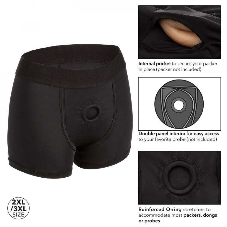 Трусы боксеры Boundless Boxer Brief Harness имеют очень широкий пояс, мягкую эластичную ткань и усиленное уплотнительное кольцо для максимальной поддержки страпона.