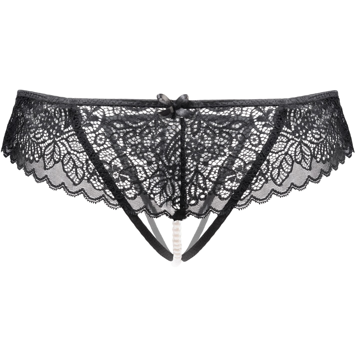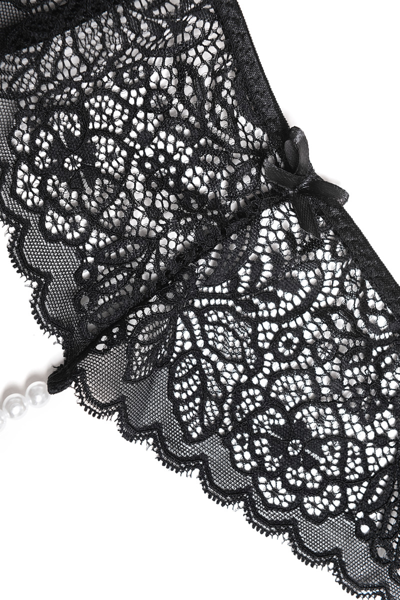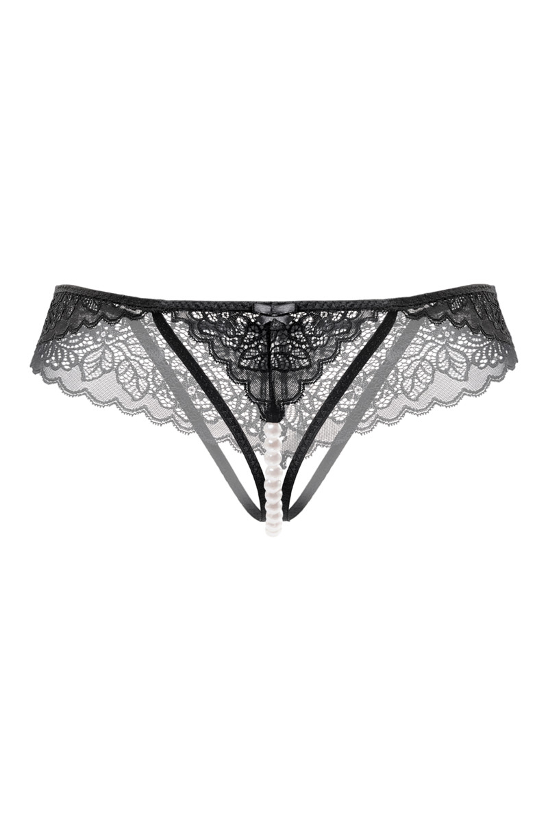 Эластичное кружево создает ажурный узор на коже, выгодно подчеркивает женские формы и рождает пленительный визуальный образ. Модель включает жемчужную нить для стимуляции эрогенной зоны. Трусики используются как аксессуар для техники сексуального «якорения».