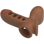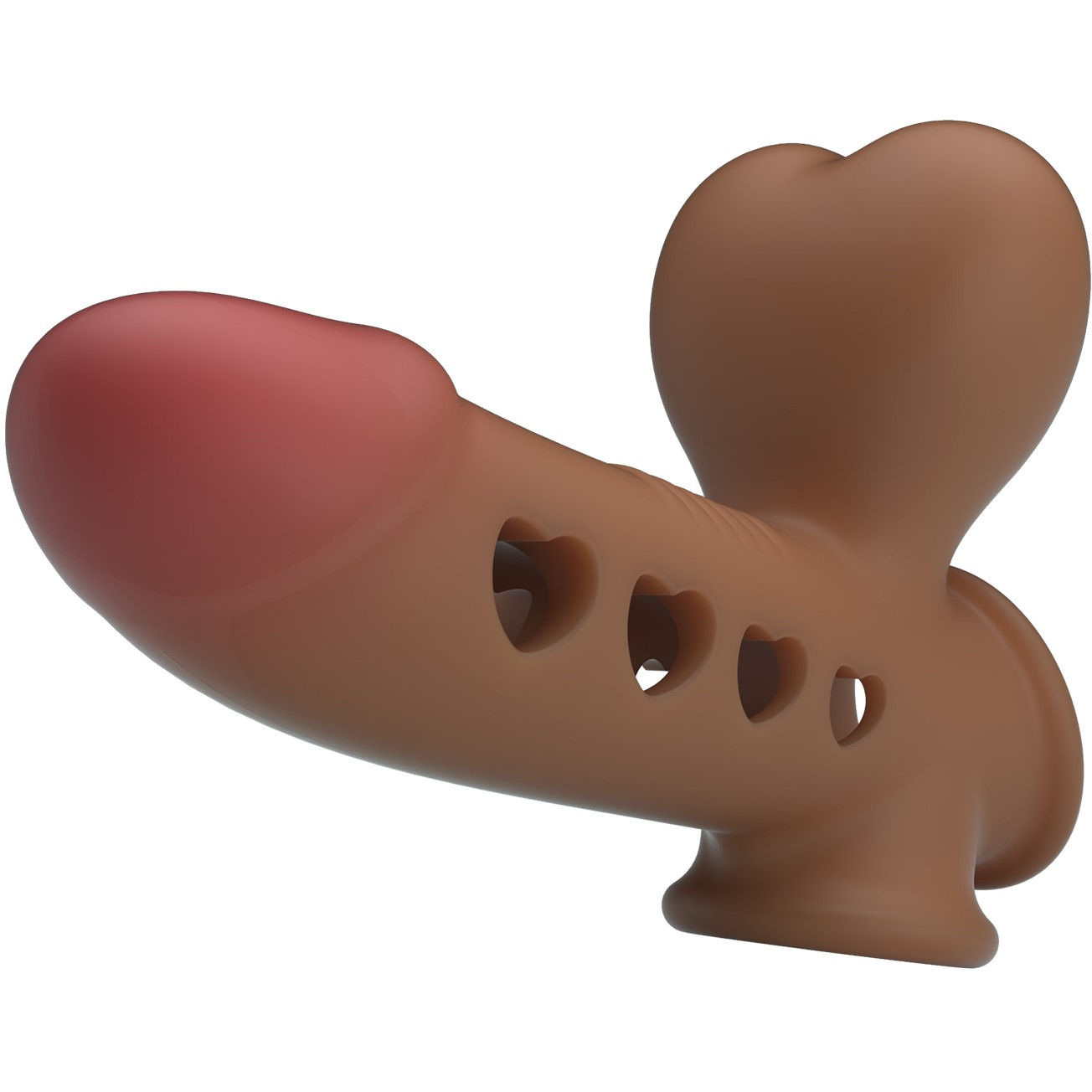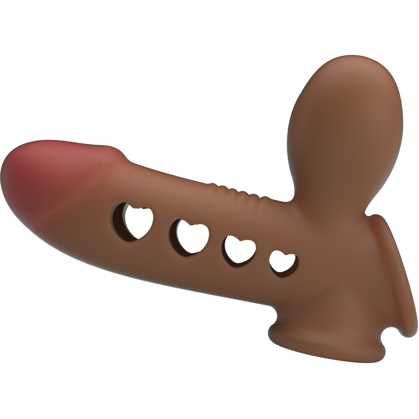 - Увеличение и стимуляция: уплотнение на конце насадки визуально увеличивает длину, а толстые стенки добавляют объема. Рельефные "рёбрышки" на верхней части и интегрированная груша, которая создает выпуклость для стимуляции точки G гарантируют интенсивное и разностороннее воздействие на самые эрогенные зоны.