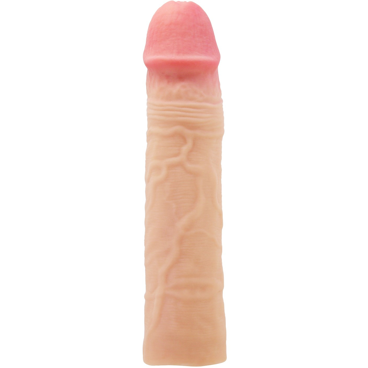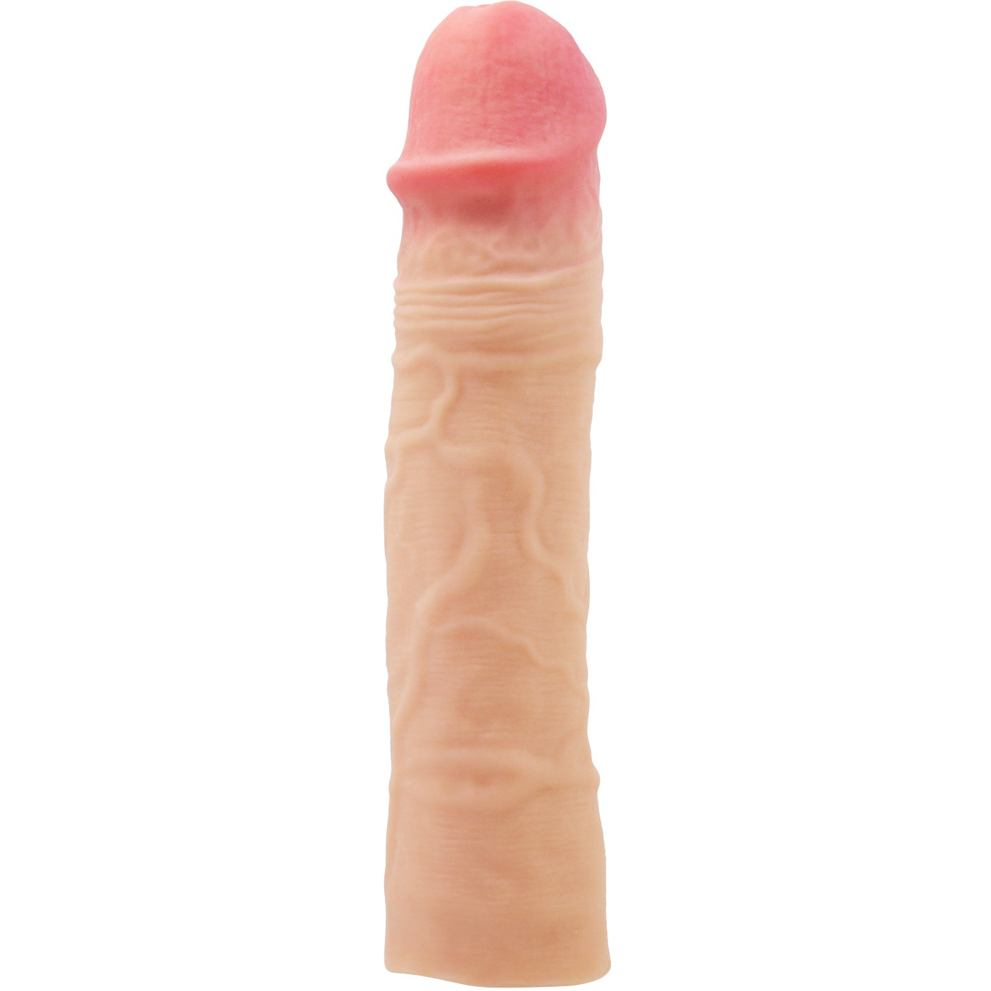 Насадка напоминает презерватив, вот только использовать её можно очень долго, реалистичная выраженная головка и текстурированная поверхность насадки с реалистично проработанными прожилками обеспечит максимальное удовлетворение для вашего партнера, даря ему совершенно необычные и глубокие ощущения. Внутренний гладкий тоннель насадки обеспечивает идеальное прилегание.