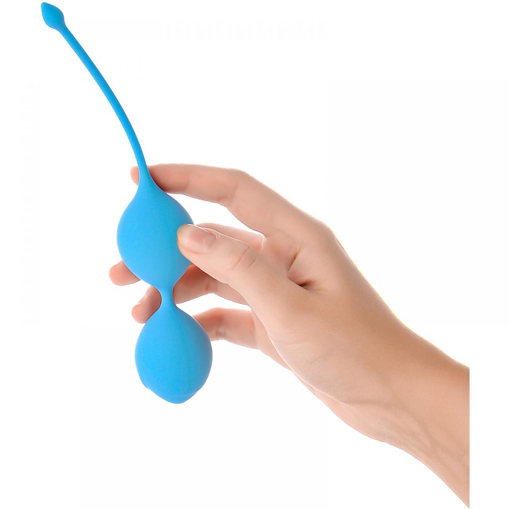 Вагинальные шарики A-Toys со смещенным центром тяжести выполнены из нетоксичного и гипоаллергенного 100% силикона высокого качества. На конце есть веревочка, позволяющая легко вводить и извлекать игрушку.