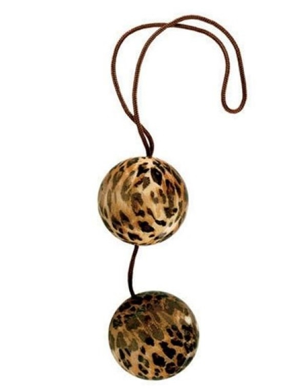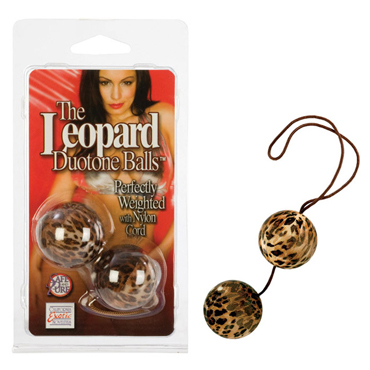 California Exotic Duotone Balls – вагинальные шарики хищной леопардовой расцветки со смещенным центром тяжести, соединены между собой нейлоновой нитью.