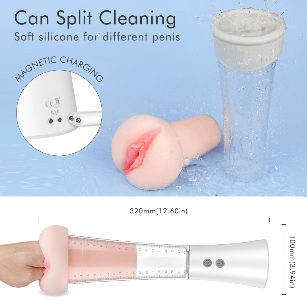 - Прозрачная камера с измерительным датчиком: прозрачный цилиндр позволяет следить за прогрессом в режиме реального времени, а встроенный измерительный датчик помогает отслеживать изменения в длине и обхвате в течение нескольких сеансов.