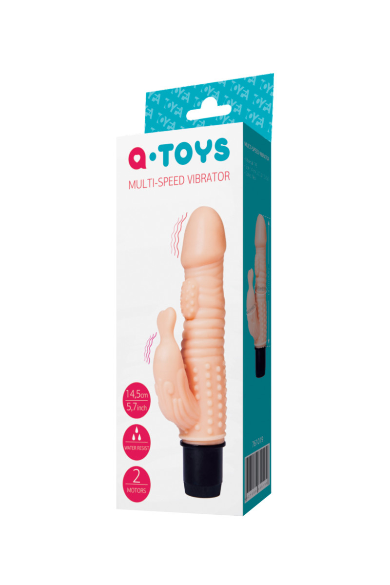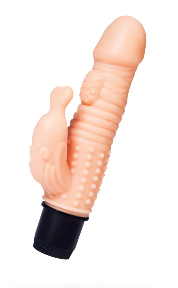 Рельефный ствол вибратора усилит эффект от внутренней стимуляции, а крупный пупырчатый бугорок как раз будет пробуждать точку G, клиторальный стимулятор займется головкой клитора.
