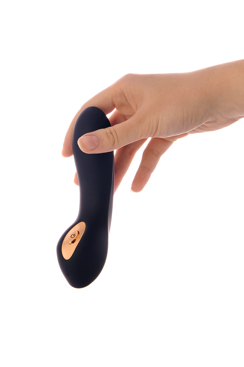 Имеет чуть загнутый ствол и расширение по диаметру в верхней части. Такая уникальная форма позволяет женщине воздействовать на такие места во влагалище, куда не добраться обычному мужскому пенису.