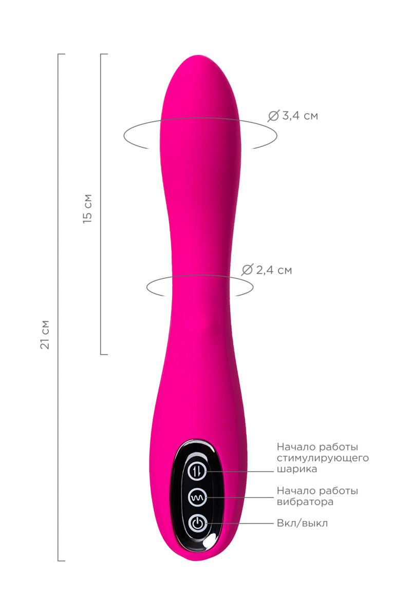 Простое интуитивно понятное управление от трех кнопок на основании игрушки: кнопка включения, кнопка переключения режимов вибрации и кнопка включения стимулирующего шарика.