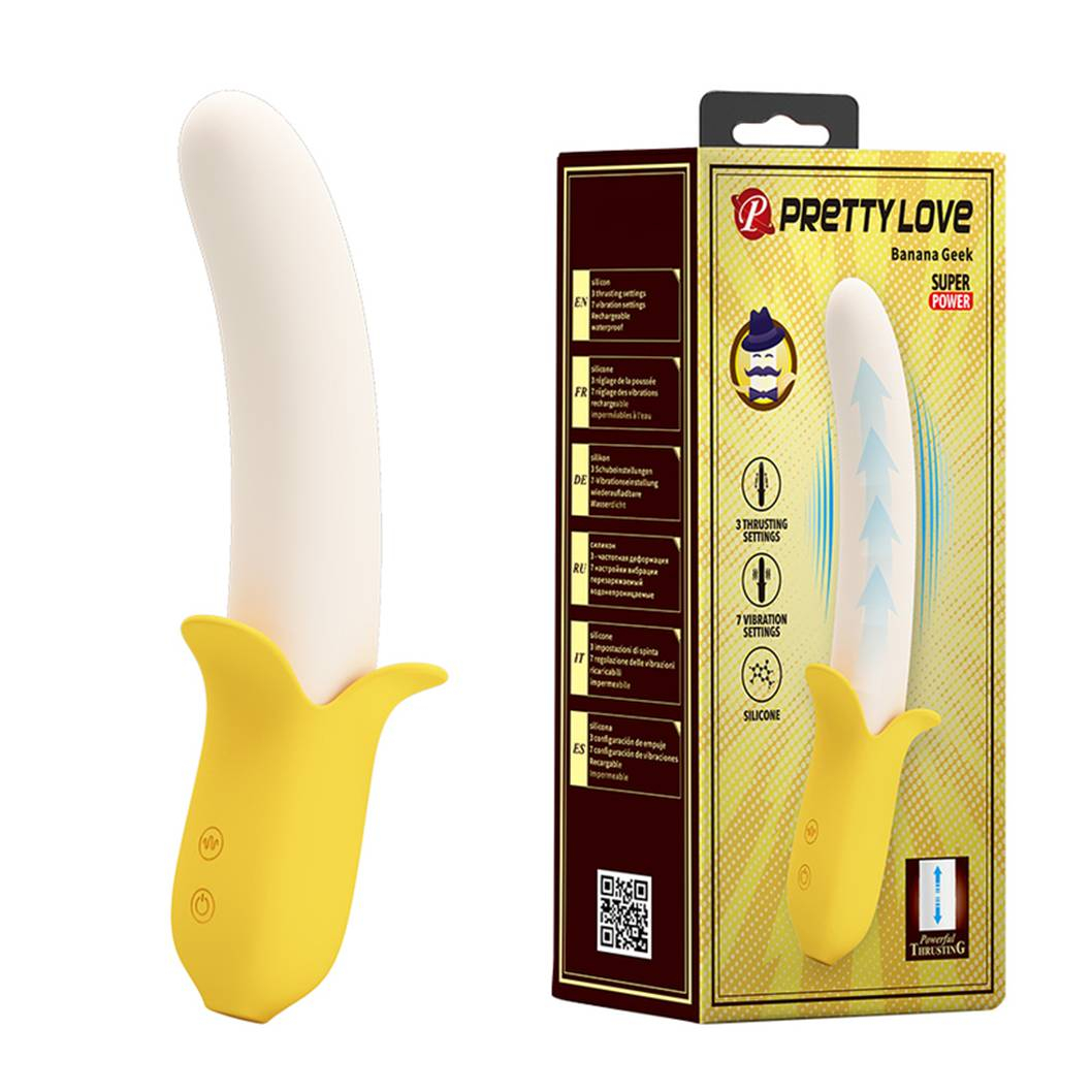Вибратор Banana Geek для стимуляции точки G, совершающий пенетрацию – забавная и привлекательная сексуальная игрушка, которая не оставит вас равнодушными. Эротический девайс приятно удивляет не только игривым дизайном, но и функционалом, который доставит вам самое яркое наслаждение. Игрушка имеет эргономичную изогнутую форму для целенаправленной стимуляции точки G и комфортную рукоять в виде кожуры банана для дополнительного воздействия на клитор. Стимулятор вибрирует, но самая фишка, что в этот же момент банан совершает фрикции, так что вам нет необходимости его шевелить, доверьтесь его чутью.