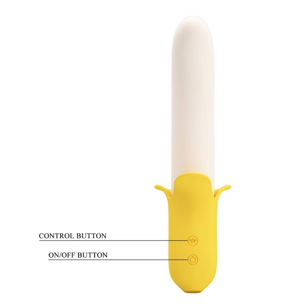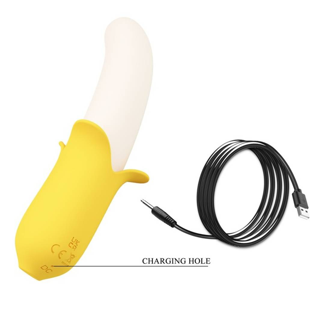 Мощный моторчик игрушки предлагает 7 программ. Управление осуществляется с помощью 2 кнопок на рукоятке игрушки: одна кнопка отвечает за включение и выключение, вторая кнопка переключает режимы. Аккумулятор банана перезаряжается через USB-кабель (поставляется в комплекте). Время полной зарядки 90 минут, время работы 60 минут.