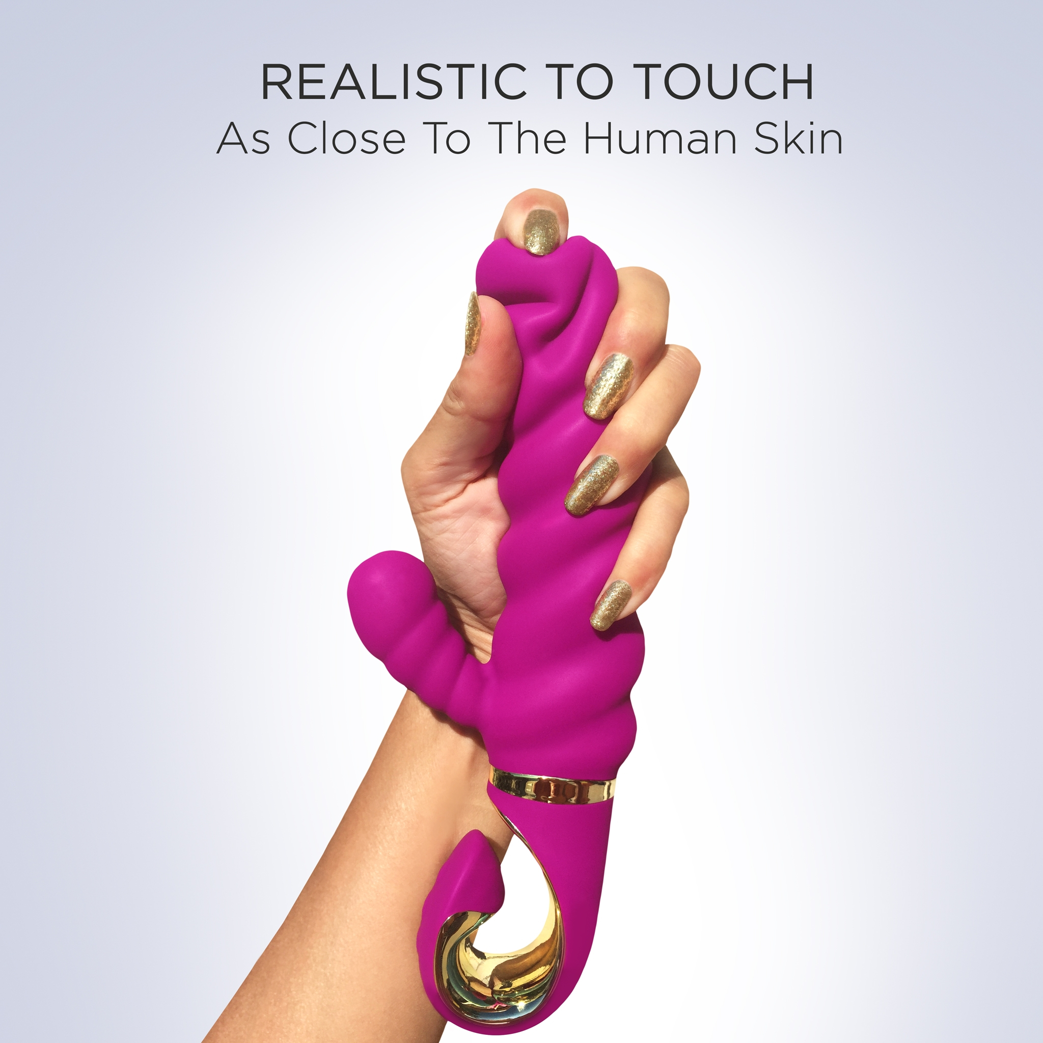 Витой ствол, 2 мотора внутри игрушки, полная водонепроницаемость – это настоящее сокровище для любой девушки.