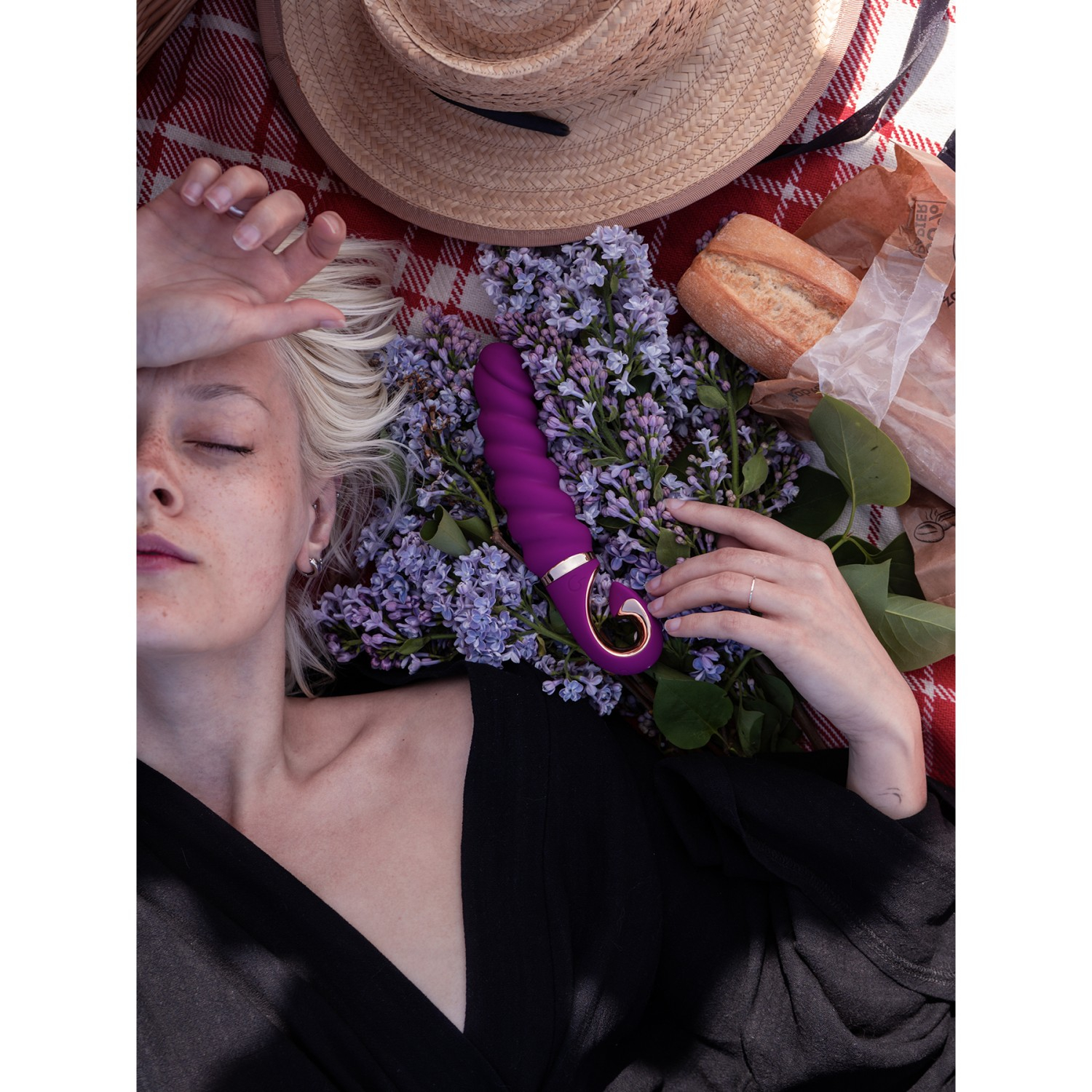 Ствол вибратора Gvibe Gjack Mini, жесткий, слегка изогнутый, чтобы головка фаллоса точно касалась точки G, витой формы, сделан из зефирно-мягкой биокожи! Поэтому ласки чувствительны, но деликатны. При возвратно-поступательных движениях это похоже на ласки кончиками пальцев.