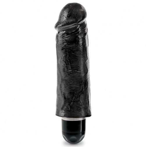 Вибратор-реалистик 5 Vibrating Stiffy представляет собой тандем из пластикового мультискоростного вибратора и реалистичной насадки в черном цвете.