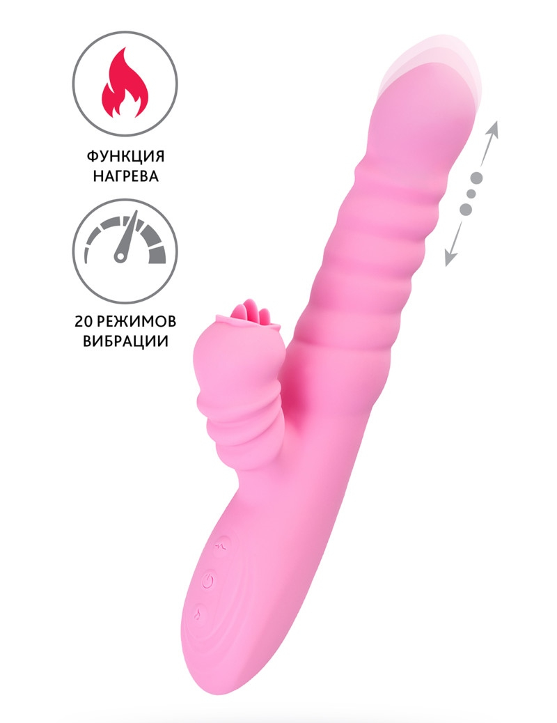 Два мощных мотора, один отвечает за поступательные движения, второй за клиторальный отросток. Два моторчика работают в 20 режимах вибрации и 3 поступательных режимах, вы без труда найдете подходящую для вас комбинацию.