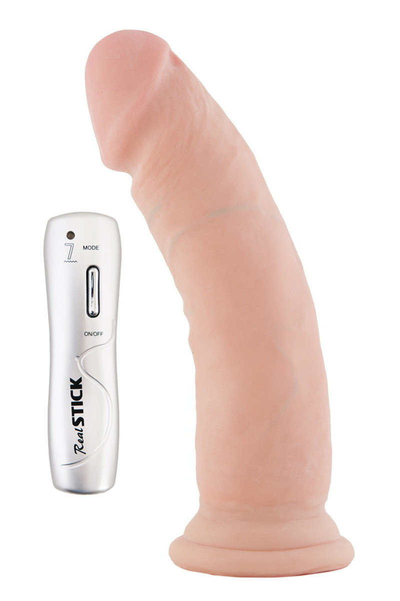 Невероятно реалистичный вибратор с 7 взрывными режимами вибрации. Вибрация усиливает наслаждение от использования игрушки, даря эйфорию удовольствия всему телу! Выносной пульт управления удобен для выбора режима вибрации. Эта игрушка подарит вам волну наслаждения, как только войдет в вас! Материал этого вибратора, киберскин - имитирует ощущение прикосновения к человеческой коже. Каждая модель линейки RealStick- неповторима и выполнена по слепку настоящего полового члена.