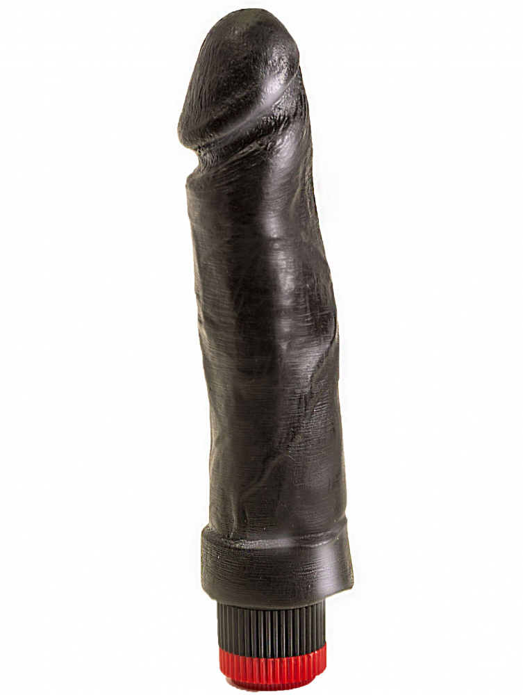 Черный вибратор супер-большого размера выполнен очень натурально, толстый ствол и объемная головка заставят мечтать о немедленном, безудержном сексе.