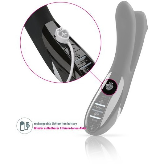 Девайс имеет перезаряжаемый литий-ионный аккумулятор, USB-кабель для зарядки входит в комплект. Время зарядки - 120 минут, время работы - 60 минут. Чтобы зарядить вибратор, поместите зарядную головку прилагаемого USB-кабеля на соответствующие контакты на игрушке. В процессе зарядки светодиодные индикаторы кнопок мигают. Когда зарядка завершена, они горят постоянно. В процессе зарядки игрушка не работает.