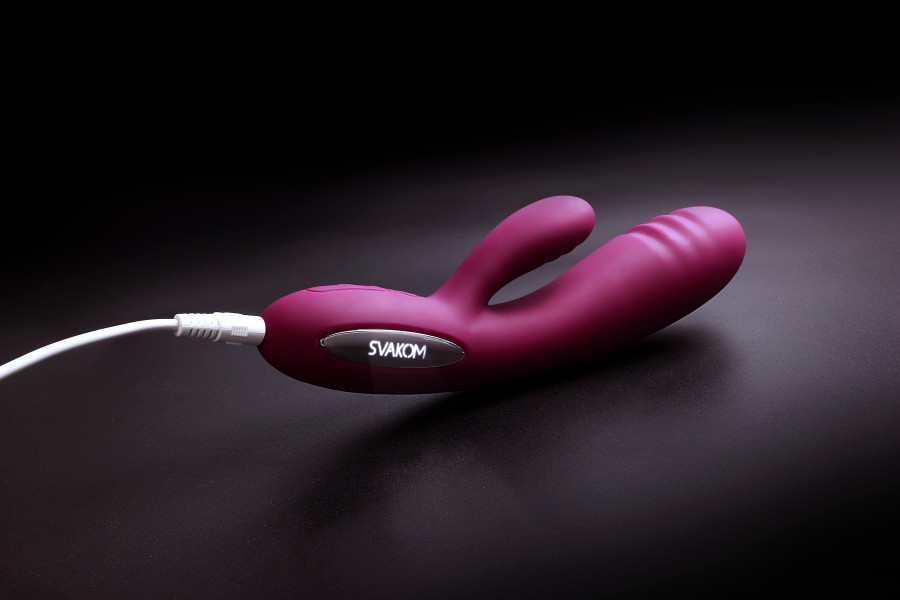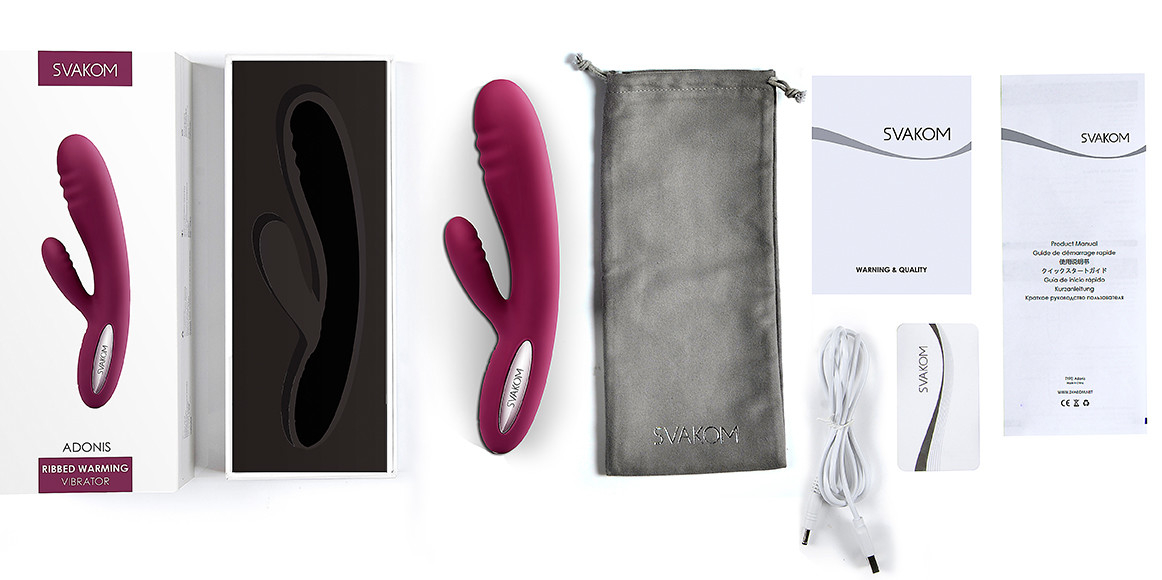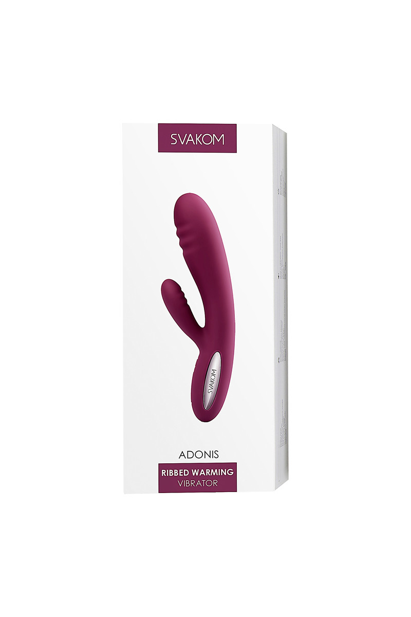 Svakom Adonis - вибратор для вагинальной и клиторальной стимуляции. Головка и стимулятор клитора имеют выступающие ребрышки, созданные для более интенсивного массажа точки G и клитора.