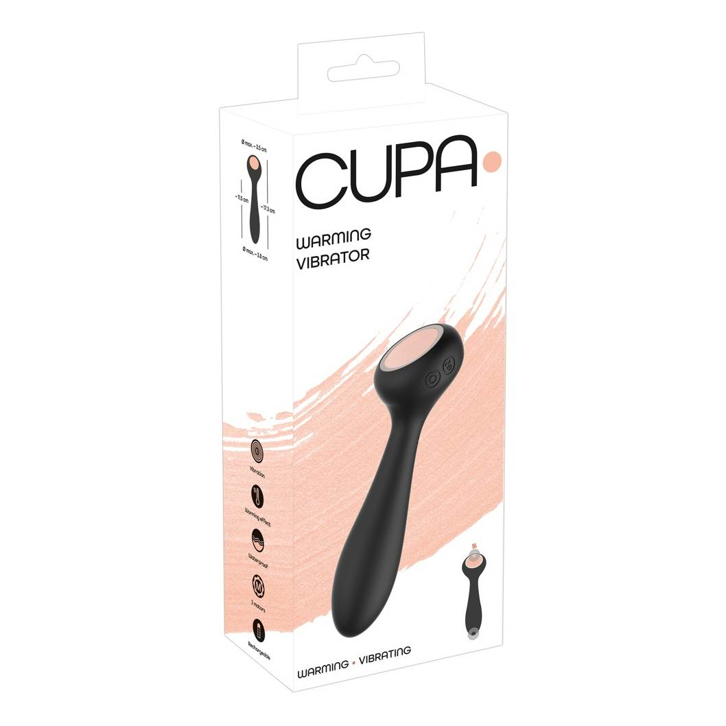 Вибратор Cupa стимуляция теплом и вибрацией. Этот девайс можно использовать как для наружной стимуляции, так и для внутренней. С одной стороны сплющенная округлая головка с функцией подогрева используется для стимуляции по телу или любых наружных эрогенных зон. Со второй стороны гладкий округлый вытянутый стимулятор, которым можно массировать точку G или мужскую простату.
