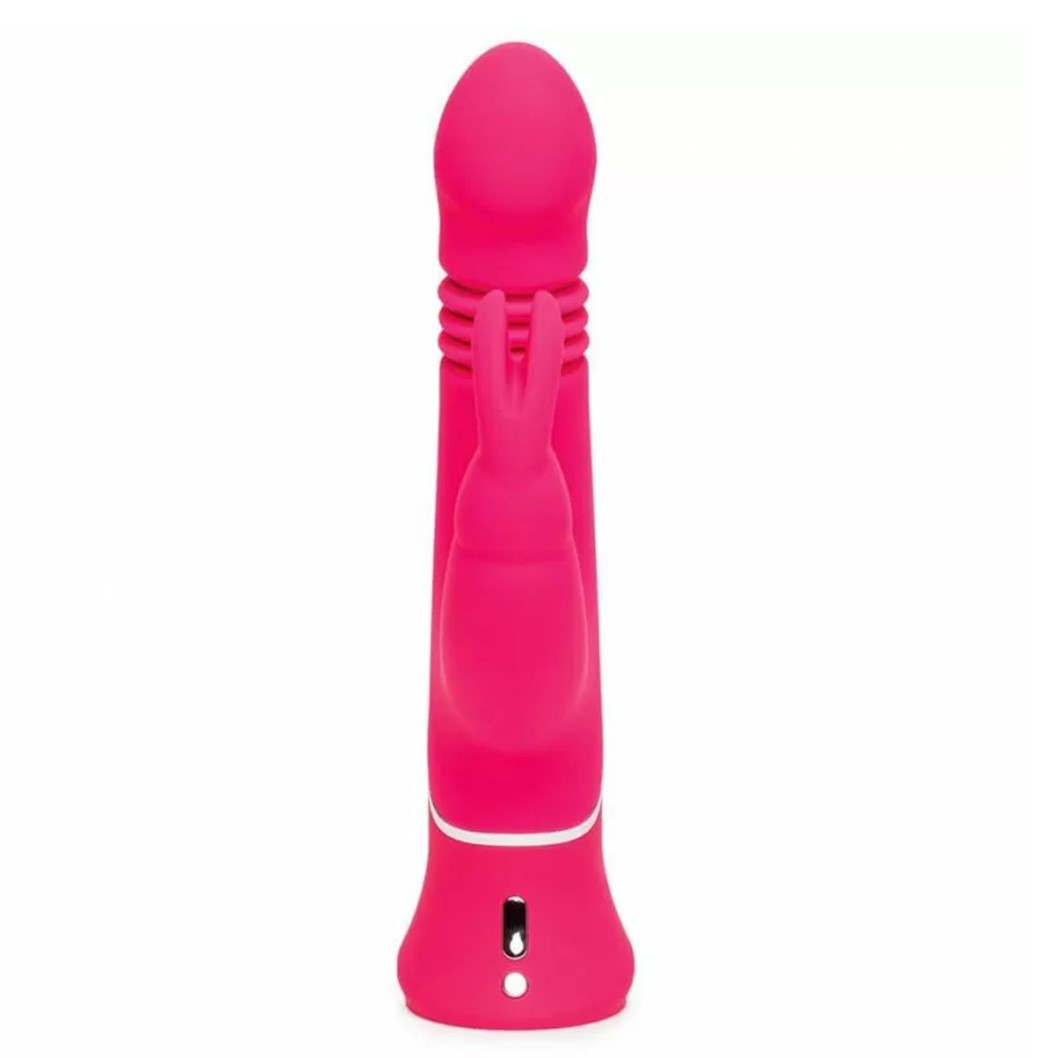 Представляем Вам rabbit-вибратор Fifty Shades Of Grey Greedy Girl Thrusting G-Spot Rabbit Vibrator, который выполнен из силикона высокого качества, бархатистого и гладкого на ощупь. Игрушка порадует вас наличием двух отростков, тот что крупнее — для вагинальной стимуляции, а меньший — это исключительно клиторальный стимулятор, ну и выполнен он в виде кролика, именно поэтому у него можно заметить милые ушки, которые являются рабочей частью, и отлично передают вибрацию.