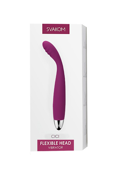 Svakom Cici сделан специально для чувственного массажа точки G. Его главная прелесть - в ребристой головке, которая гнется под разными углами. Ведь точка G расположена в своего рода изгибе лона, и такая возможность сильно облегчит доступ к ней.