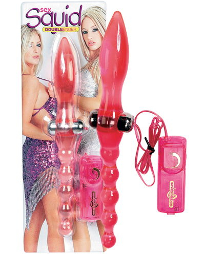Вибратор с двойной стимуляцией. С одной стороны фаллоимитатор в виде втулки, с другой анальная цепочка из пяти звеньев в виде шариков.