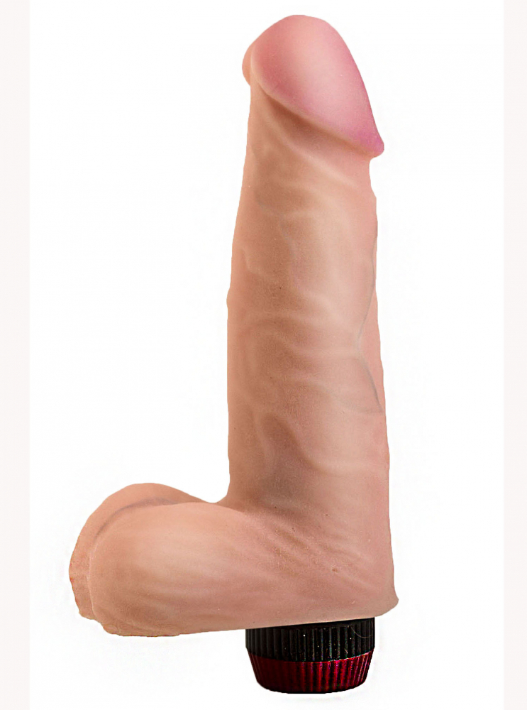 Вибромассажёр телесного цвета. Имеет форму члена с ярко-выраженной головкой.