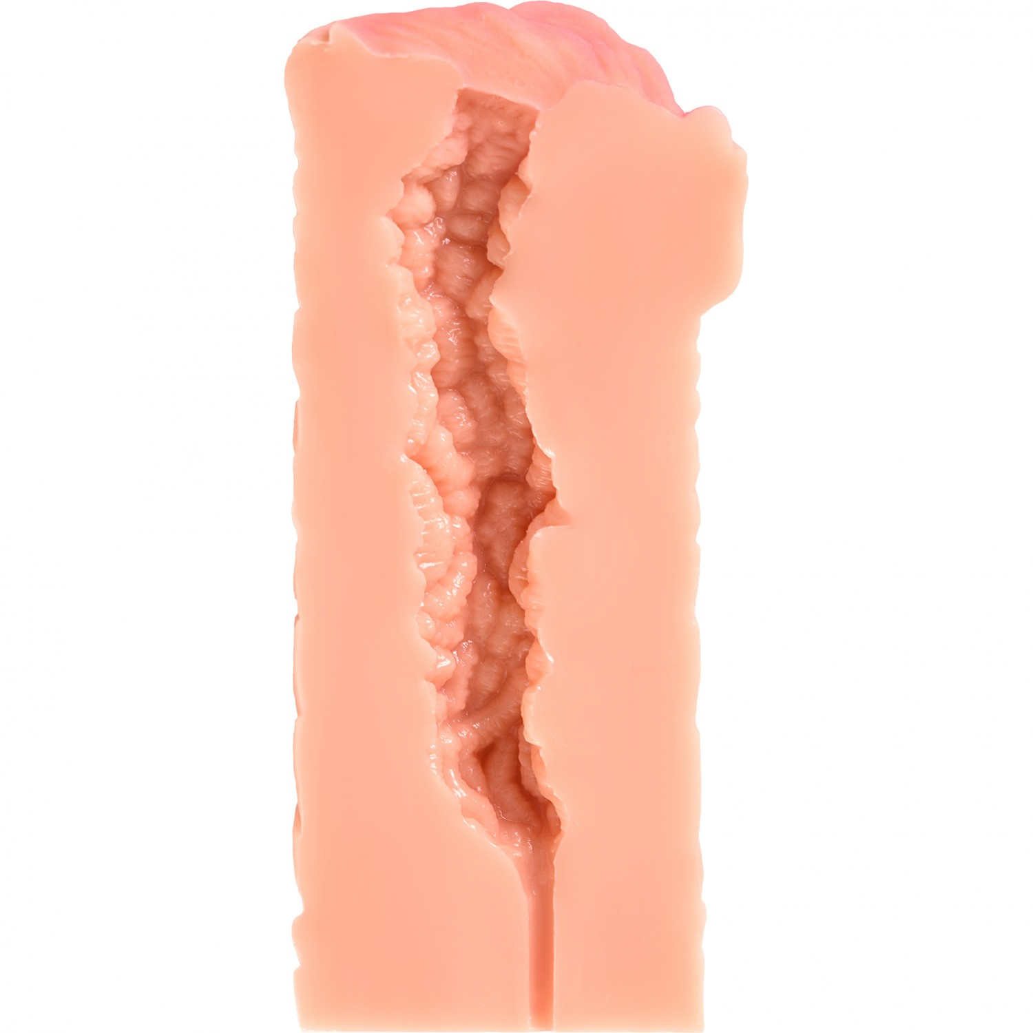 Впечатляющий внутренний рельеф повторяет каждую складочку и изгиб вагинального канала и в разы усиливает наслаждение от стимуляции. . Выраженный S-образный изгиб тоннеля дополнительно массирует головку члена. Закрытая форма тоннеля образует небольшой вакуум во время фрикций и создает легкий эффект посасывания.