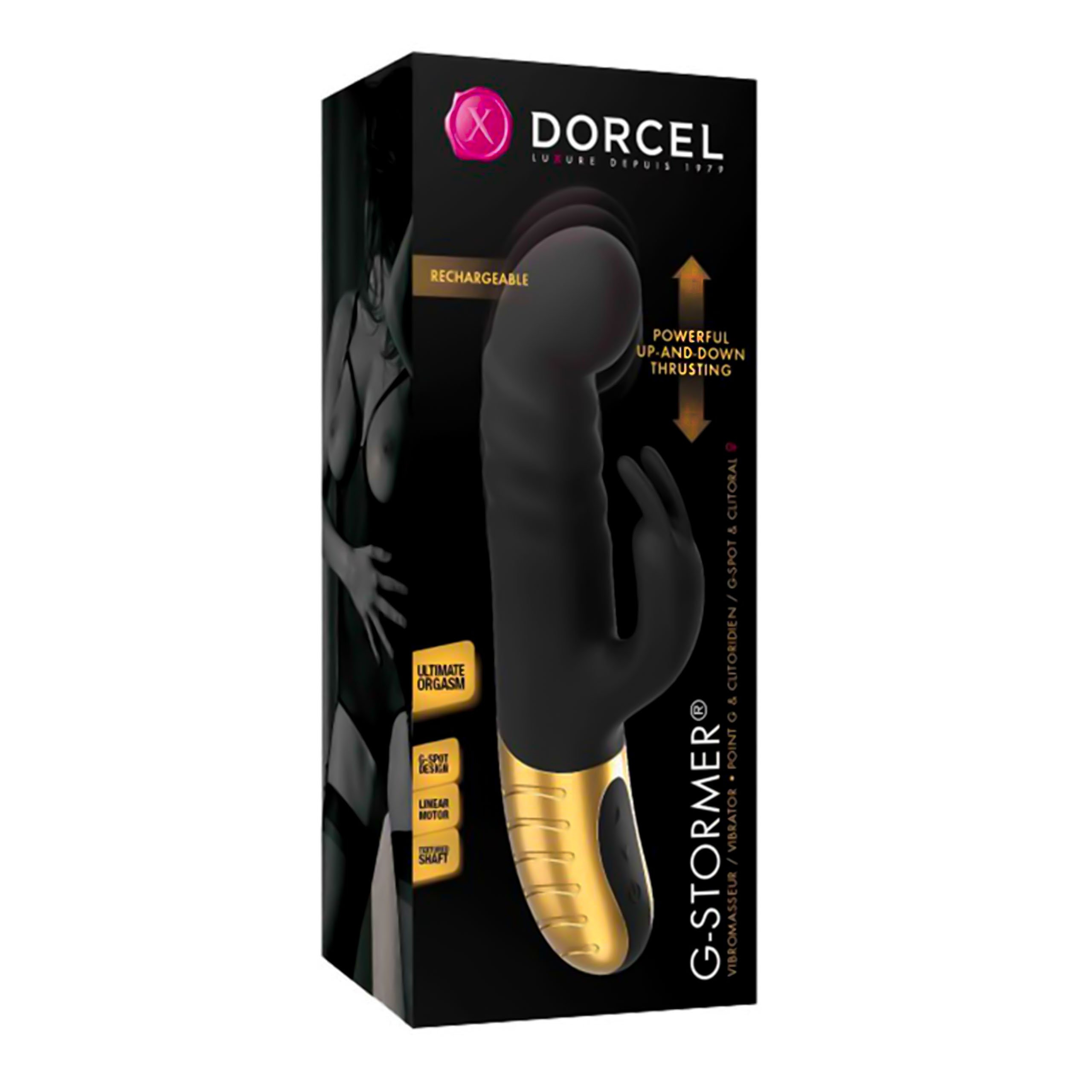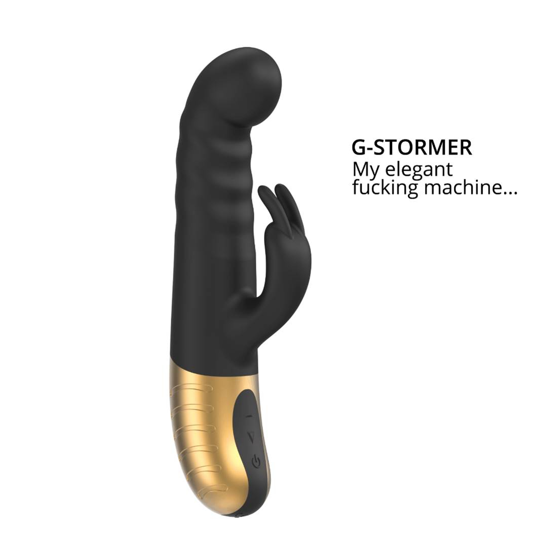 Второй мотор находится в вагинальном отростке и он совершает возвратно поступательную пульсацию, у вас есть 7 режимов интенсивности, при максимальной мощности G-Stormer обеспечивает до 1500 возвратно-поступательных движений в минуту! Загнутая круглая головка необычайно мягкая и приятная на ощупь, поэтому даже при интенсивных движениях, она будет очень комфортно воздействовать на точку G.