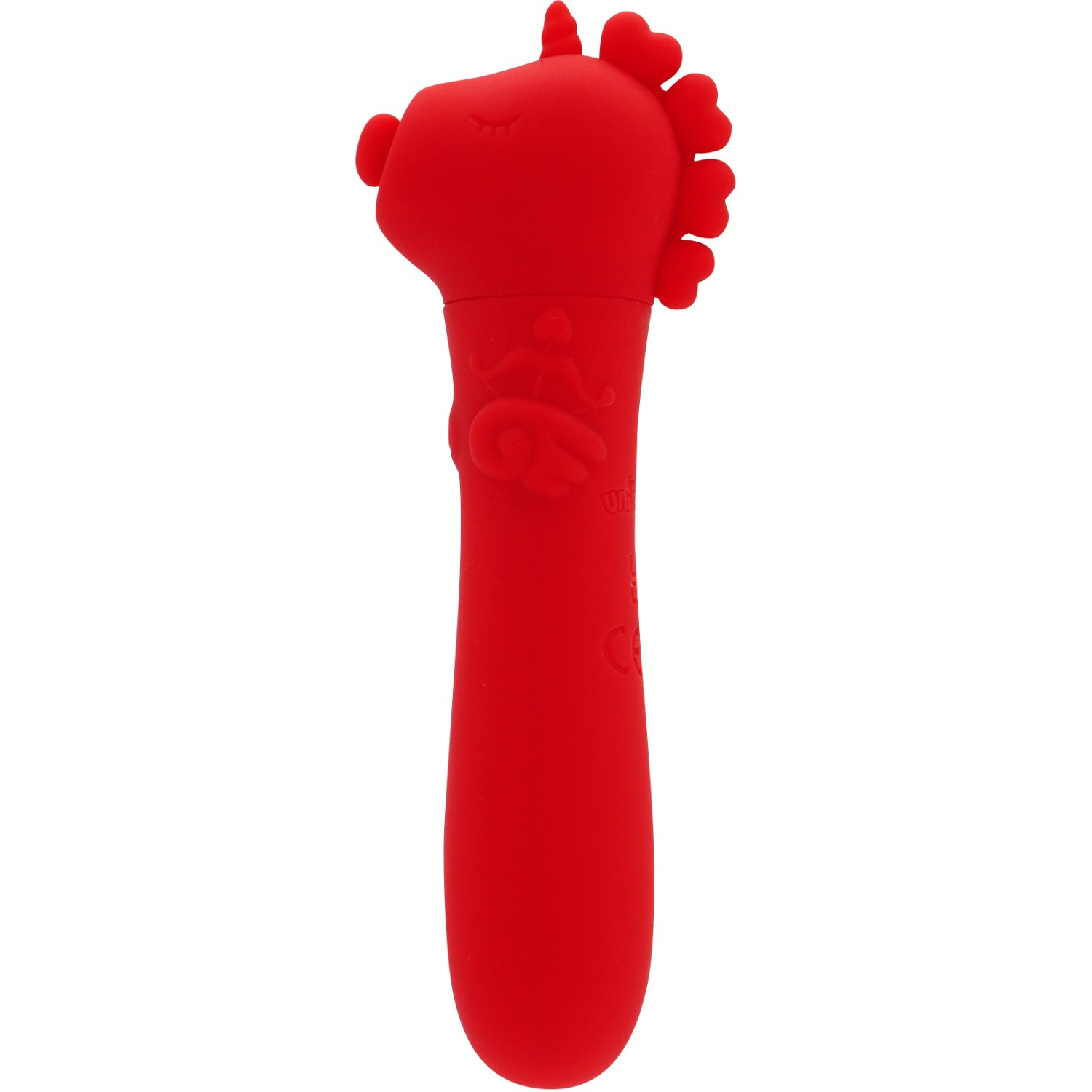 Стимулятор ярко красного цвета, оформленный в виде единорожки, который показывает язычок в форме сердечка, абсолютно не как не выдает своего предназначения, пока вы не нажмете на единственную кнопку.