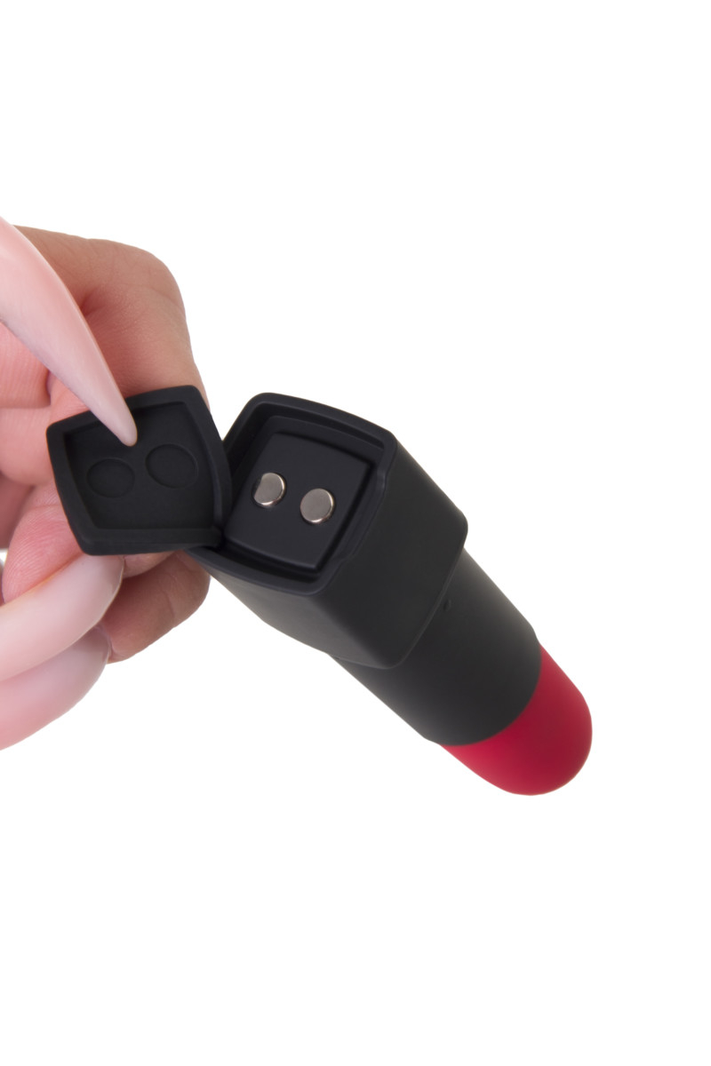 Красота и функциональность. Инновационная форма вибратора в форме шикарной губной помады. Черный матовый корпус, благородный алый цвет стимулятора и бронзовая кнопка управления – все вместе это создает эффект роскошного девайса.