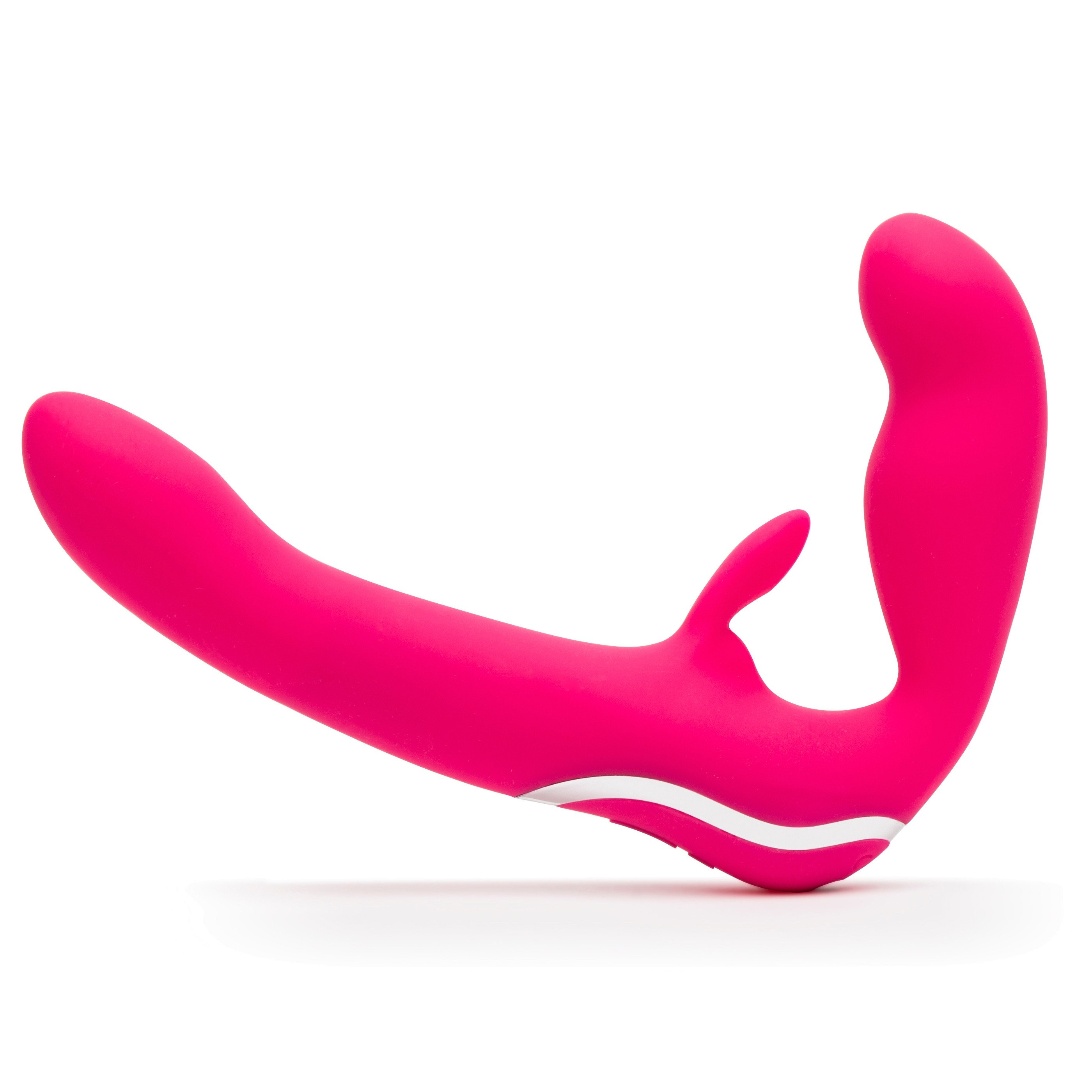 Яркий и стильный безремневой страпон от известного британского производителя LoveHoney - Happy Rabbit Rechargeable Vibrating Strapless Strap-On! Игрушка сочетает в себе стильный дизайн и самый современный функционал. Уникальный дизайн страпона позволяет наслаждаться одновременной стимуляцией точки G, клитора и вагинальной стенки у активного партнера и конечно яркой анальной или вагинальной стимуляцией у пассивного. Страпон универсальный и прекрасно подходит для всех.