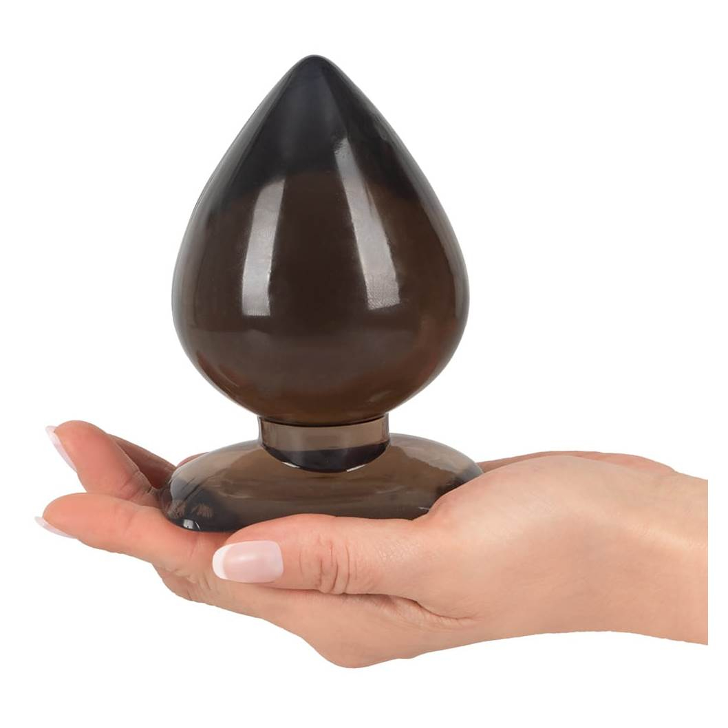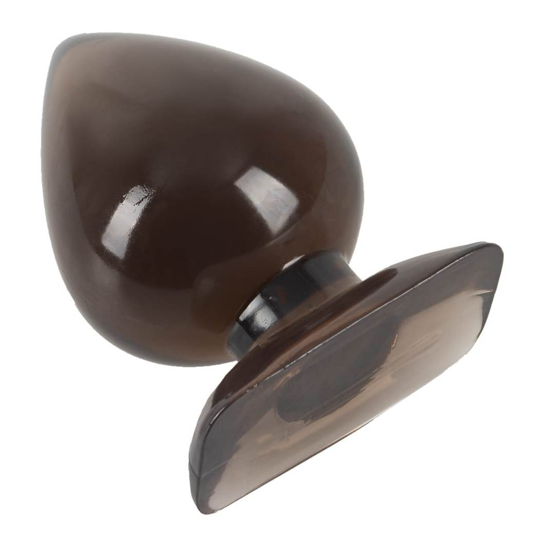 Дымно-прозрачная анальная пробка с узким кончиком, пухлым стержнем и широким основанием.
